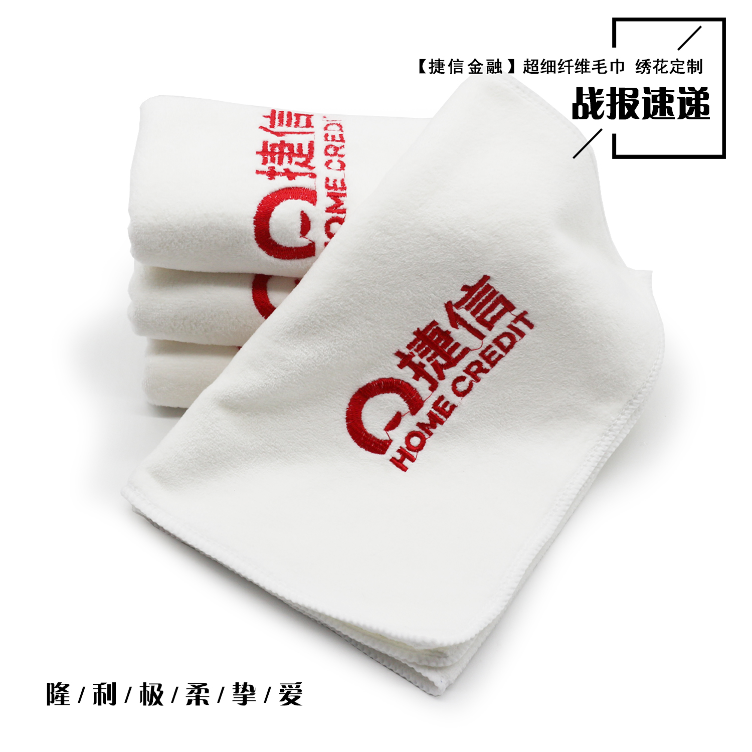 捷信金融选择隆利毛巾,既是对我厂超细纤维毛巾品质的认可,更体现了“捷信金融”对“隆利”信誉赞同